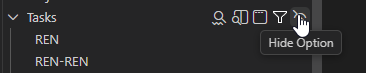 Click on the Hide Option icon to hide the folder and all options in the folder. Hidden folders/options can be used or made visible again from the Manage Hidden Options view (available as an icon on the Connection Row)