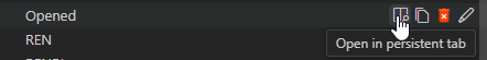 Click on this icon to open the view in a new tab, rather than replacing an existing tab for the same view. Also, the persistent tab will not be replaced automatically when another view using the tab is opened. This is helpful with multiple views of the same type need to be opened concurrently.