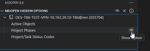 Hover over a hidden option and click the Show Option icon to make it visible in the Active Connection view again.