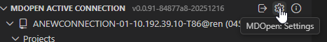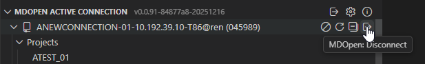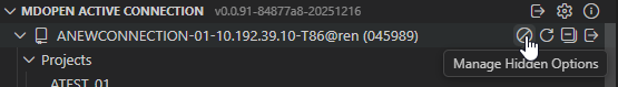 Hover over the MDOPEN ACTIVE CONNECTION title to see the following icons: