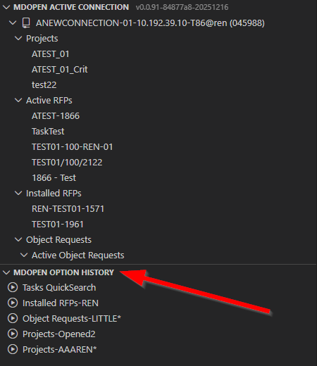MDOpen Option History View