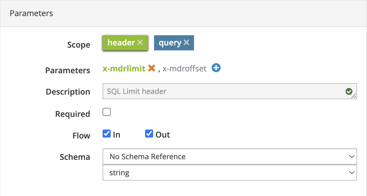 In case of "header" type parameters, an additional input "flow" is required.
