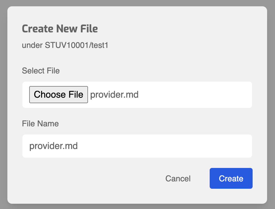 - In the dialog, click Choose File to select an existing Markdown document from your local system.