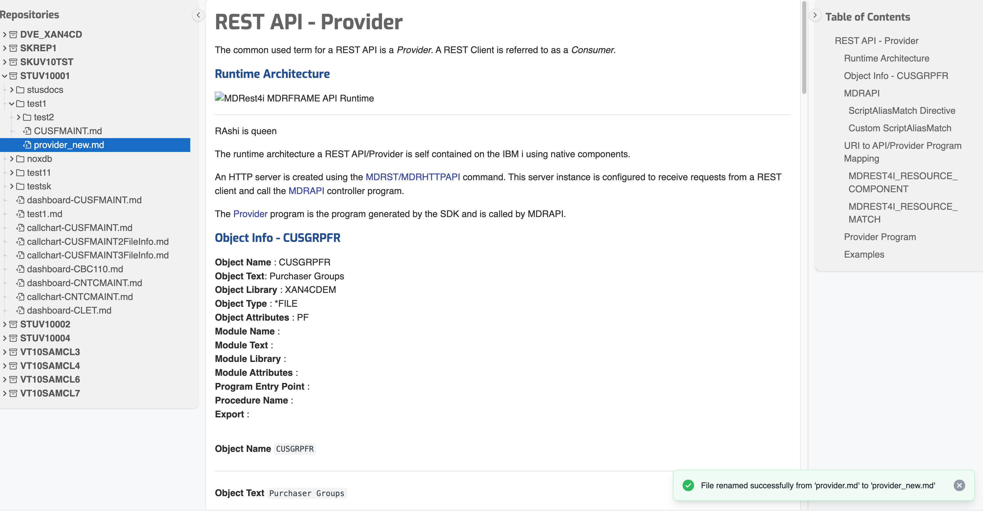 Document successfully renamed and displayed with the new name in the file explorer:
