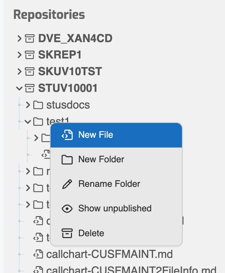 - Right-click on the folder or use the New action to open the context menu.