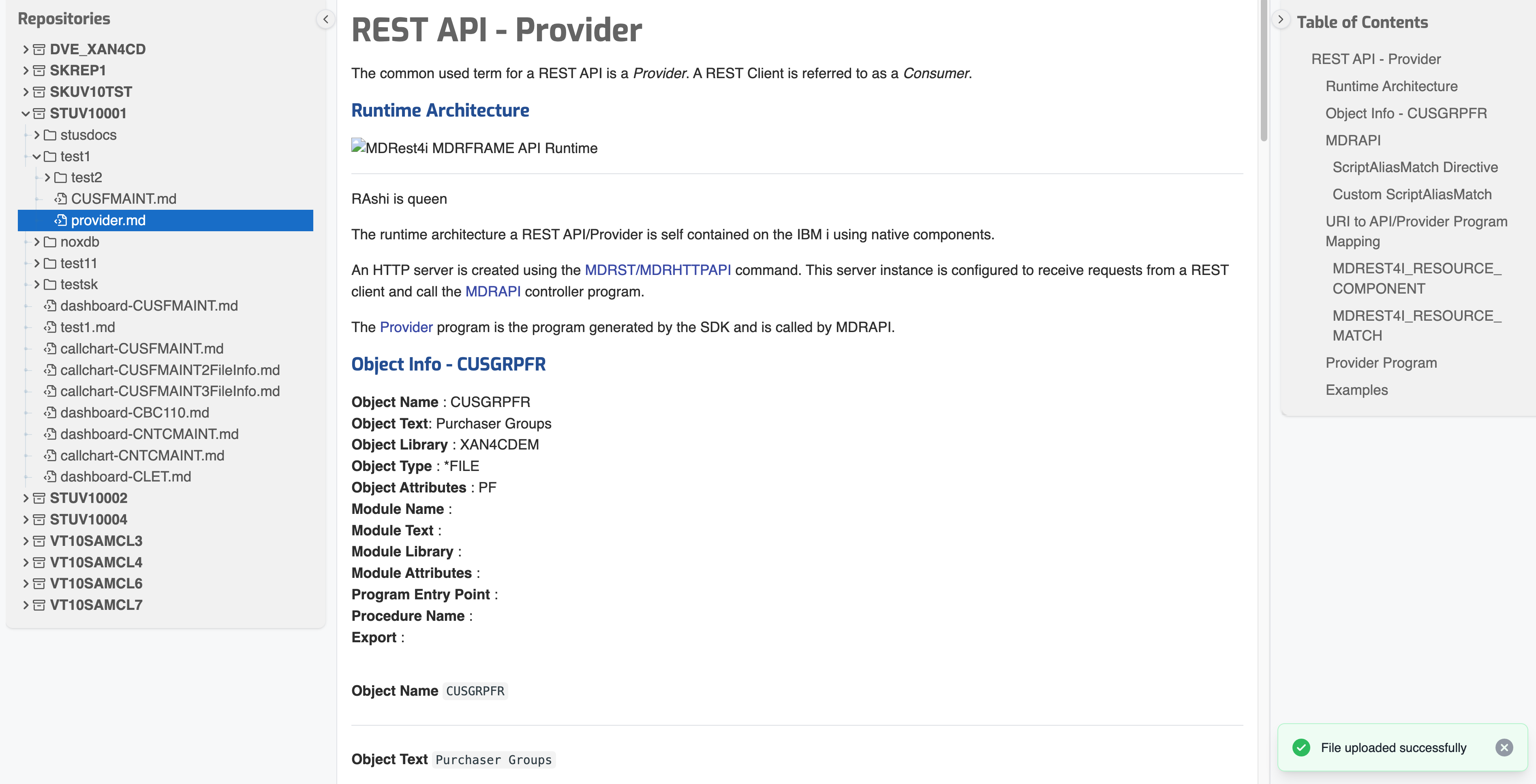 Use the File Explorer to work with Markdown documents stored on the server.