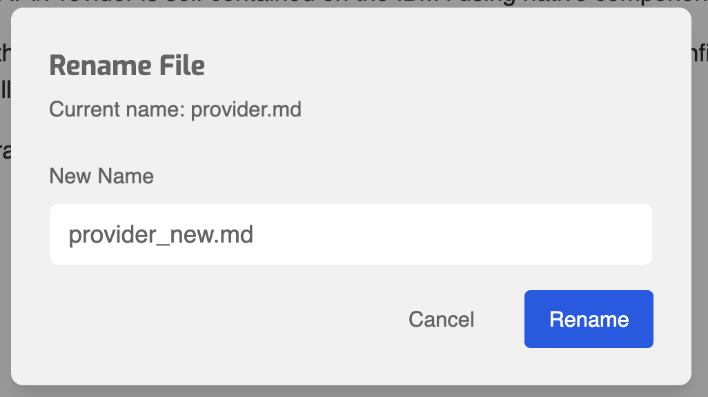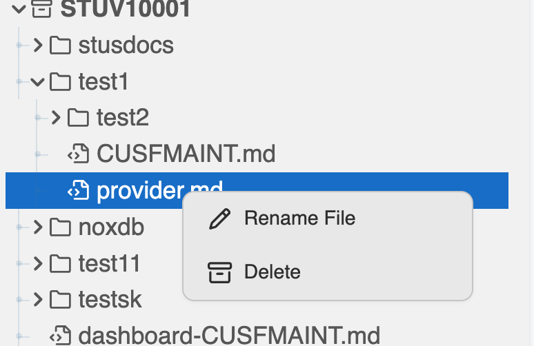 - In the File Explorer, open the context menu for the document and choose Rename File.