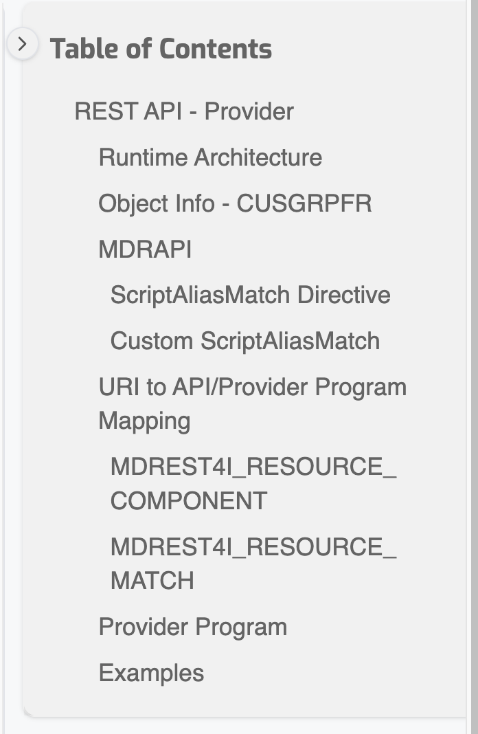 - Once a page is open, use the Table of Contents on the right to jump within it.