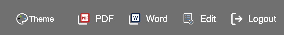 - PDF exports use the red PDF button; Word exports use the blue W button.