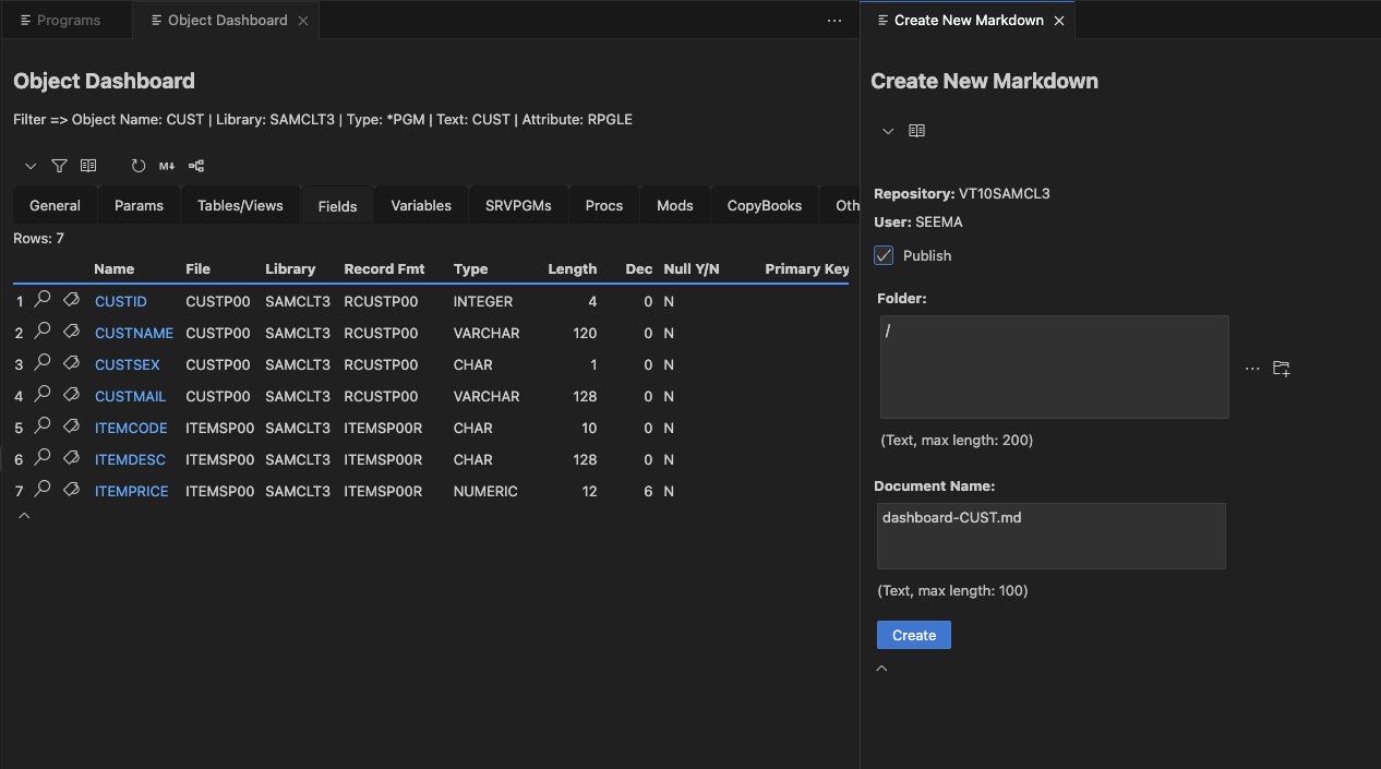 The Object Dashboard can be invoked from any of the Programs, Modules, Procedures or any Files in MDVisual