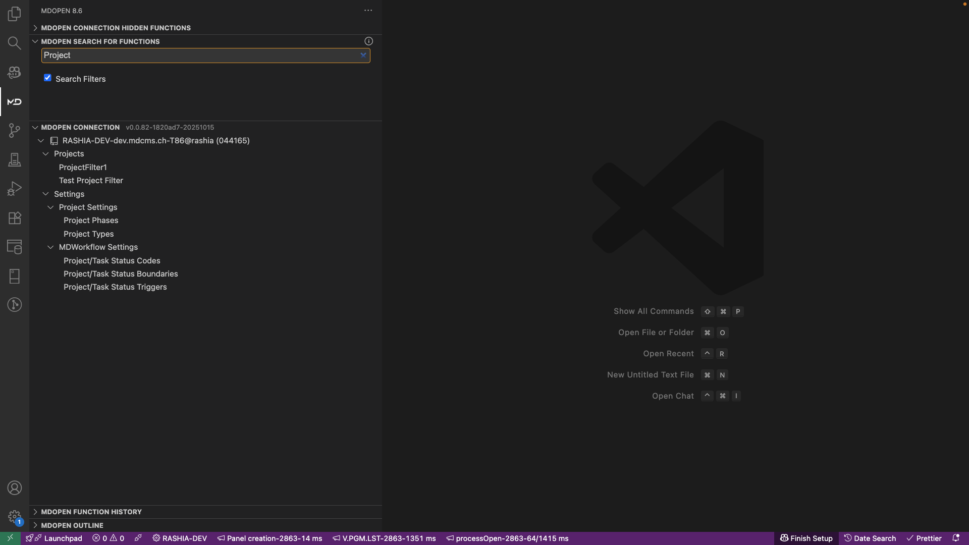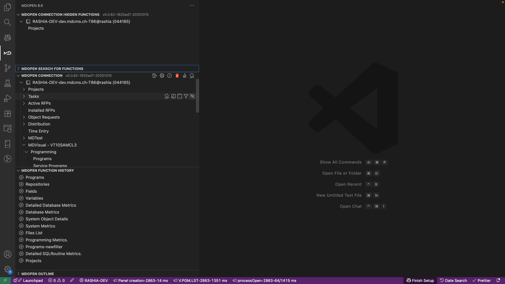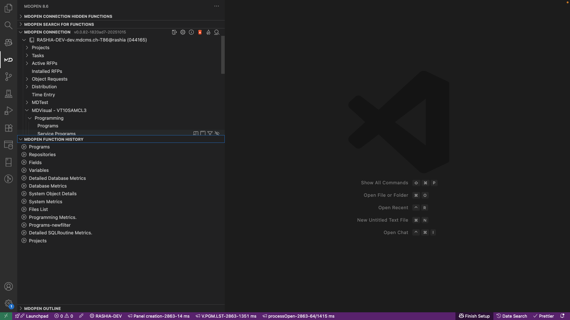 The MDOpen Panel in Visual Studio Code provides a structured and integrated workspace for managing IBM i development.