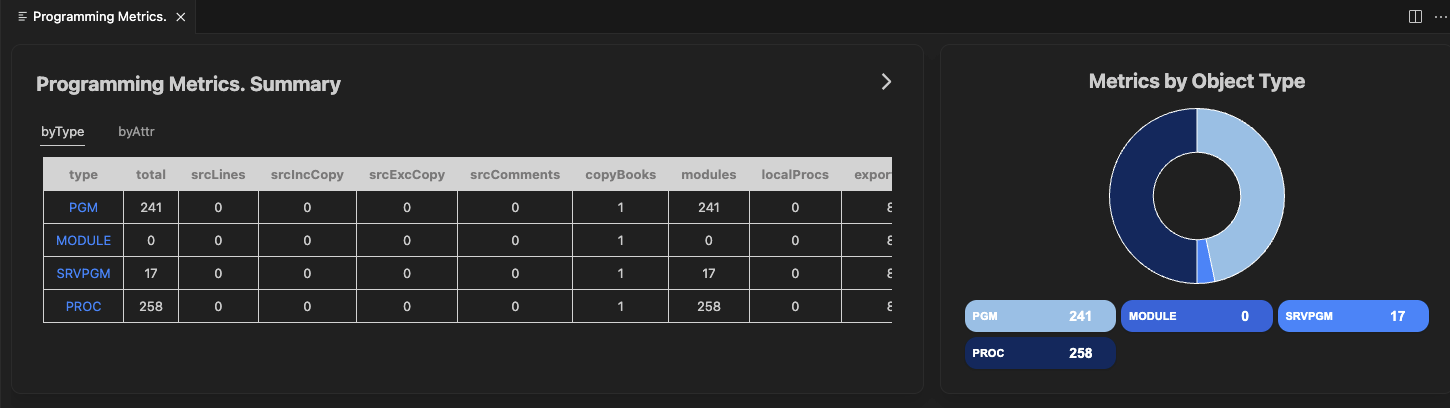 The Programming Metrics function shows metrics for programming type objects only.