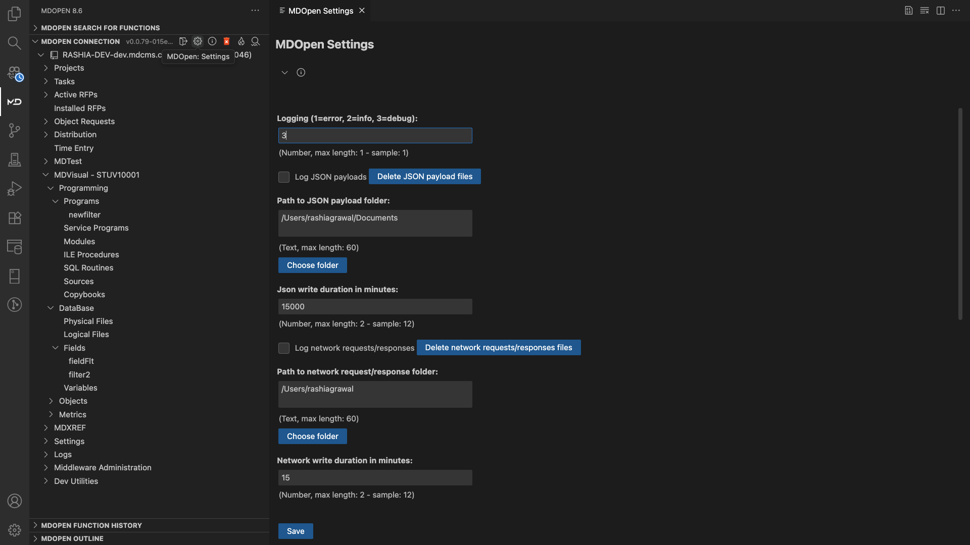 Description: Defines the directory path where MDOpen will store JSON payload logs.